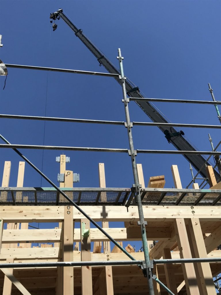 上棟時は晴天に恵まれ、青空の下で作業することが出来ました。