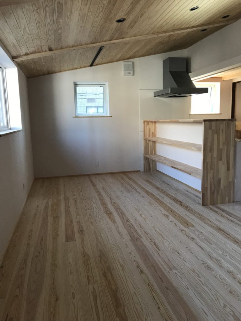 床の養生も撤去しました。うづくりのフローリングは、足触りがとても心地よいです。