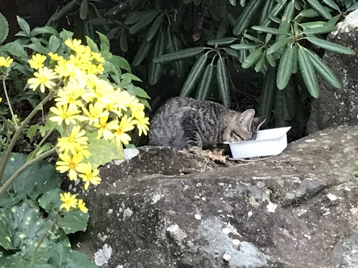 餌をやると大きな声で鳴きながら、とても美味しそうに餌を食べるネコちゃん。