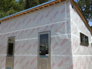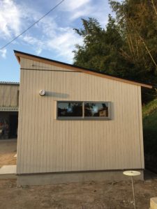 台風予測を見ながら、現在施工中の建物の安全を図るため、施工を進めてきました。 なんとか夕方までに屋根の工事も完了でき、外壁の方も通気胴縁の施工が完了しました。 これでこの建物の安全は図れました。