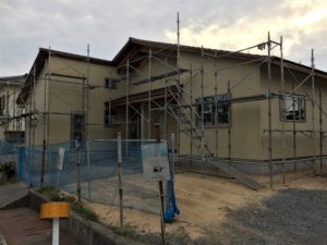 今日も風は強いものの少し暑いくらいの陽気でした。 新築住宅の建築現場の足場を撤去しました。 外観がはっきりとわかるようになりました。 完成に近づいてきました。心を込めて仕上げていきたいと思います。
