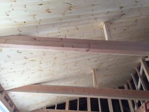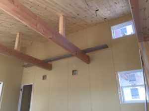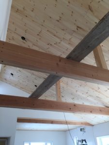 リビングの天井に板を張る作業が終わりました。 こちらのリビングは勾配天井になっています。 大きな梁が部屋のアクセントになり、明るく開放感が出ました。 今まで天井の板は横張にしていたのですが、こちらは傾斜に沿った形で張ってみました。 板の張り […]
