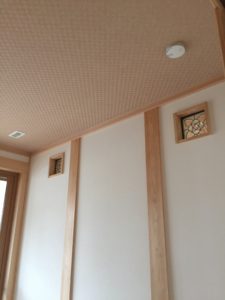 新築住宅の現場では、内装工事が完成に近づいています。 今日は和室をご紹介します。 シックな雰囲気の天井の壁紙と真壁造りが落ち着いた空間を作ってくれました。 アクセントのステンドグラスの向こう側は、リビングになっています。 収納も大きいので、 […]